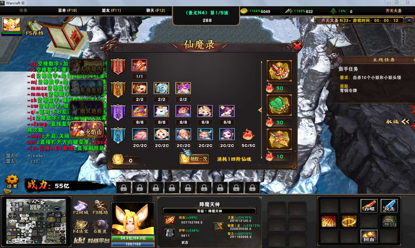 地图名字:齐天大圣1.0.230地图下载+全商城特权+全存档+隐藏英雄+无CD+指令功能