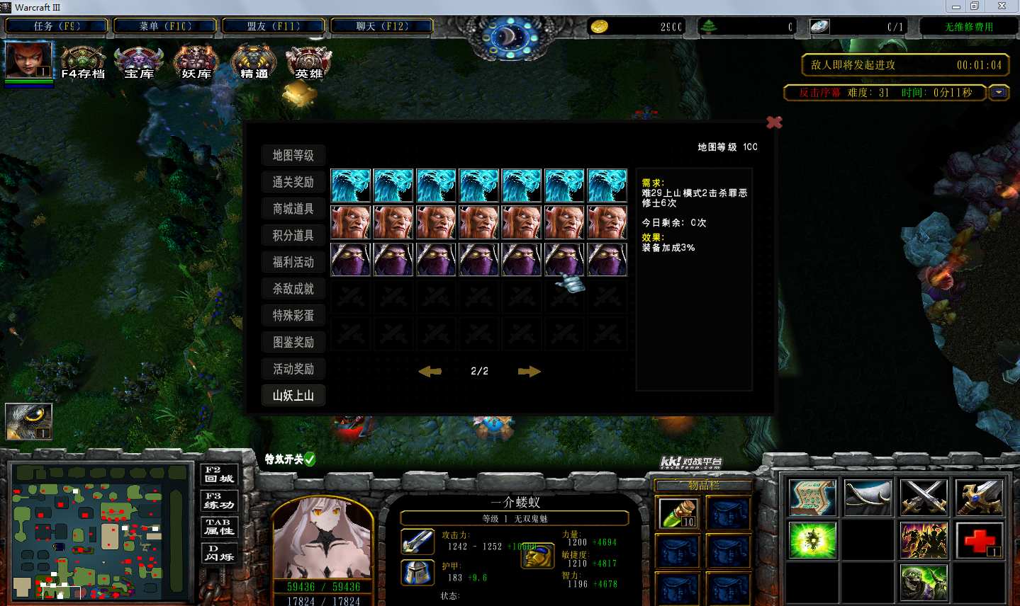 地图名字:山妖出山1.0.86地图下载+全商城特权+全存档+隐藏英雄+无CD+指令功能
