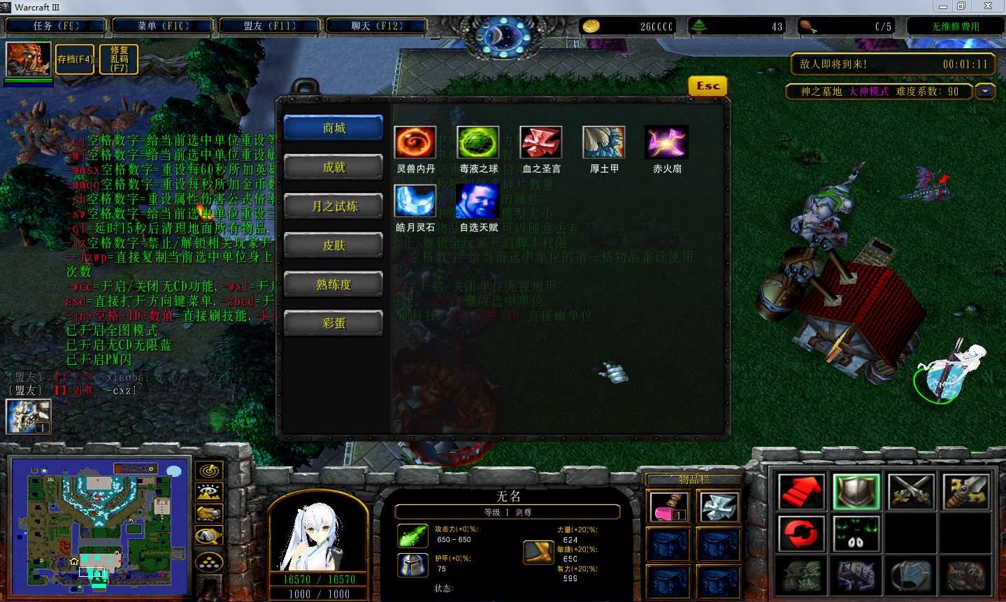 地图名字:神之墓地2.9.99地图下载+全商城特权+全存档+无CD+指令功能