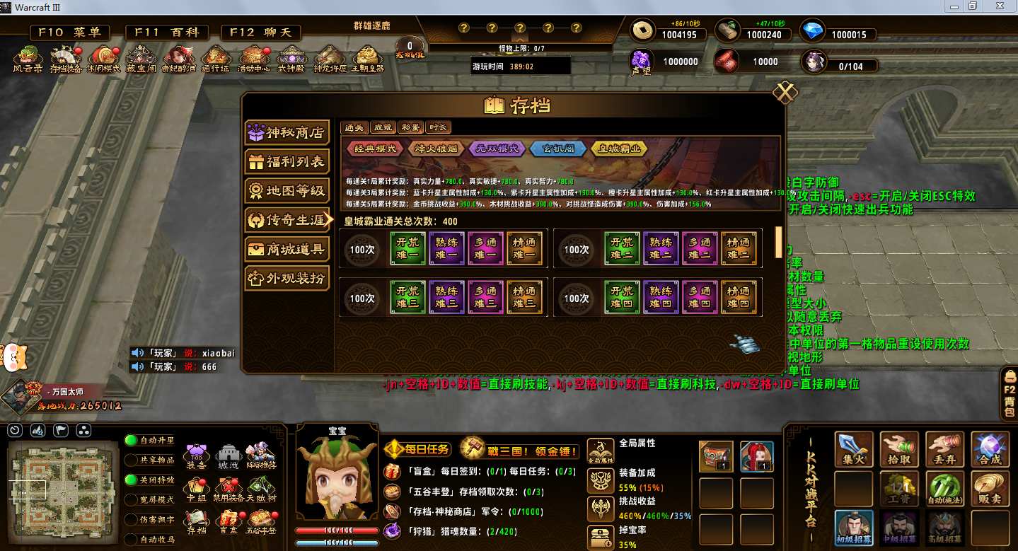 地图名字:戰三国1.1.77地图下载+全商城特权+全存档+内测指令+无CD+指令功能