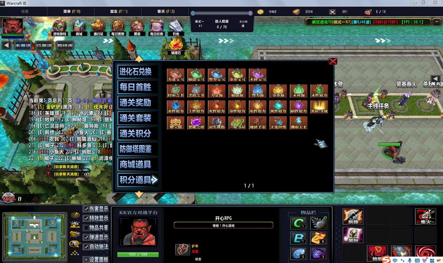 | 技能菜单【光环类技能】 | 自动化菜单【自动加钱木,提升英雄三围】 |