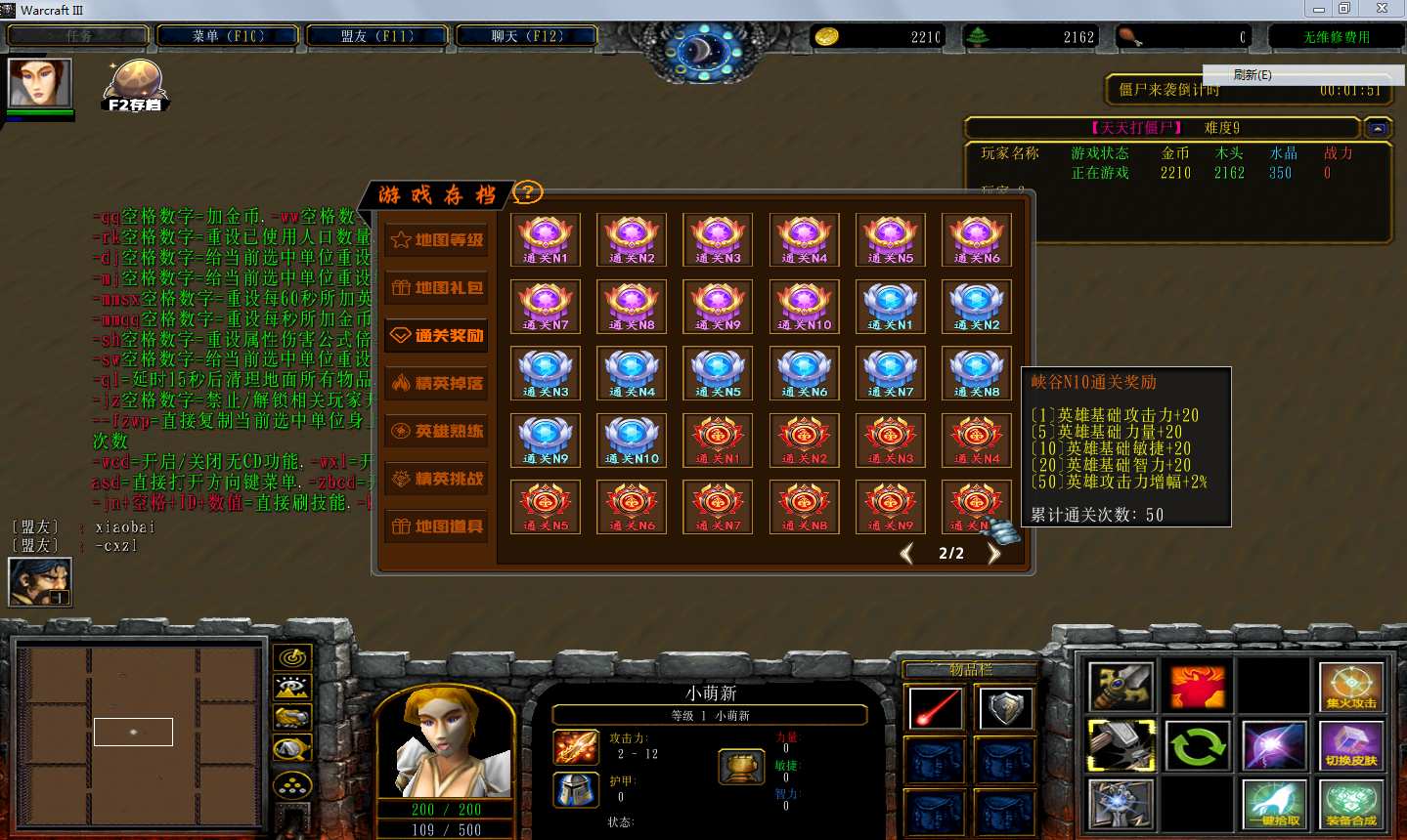地图名字:天天打僵尸1.1.1地图下载+全商城特权+全存档+无CD+指令功能