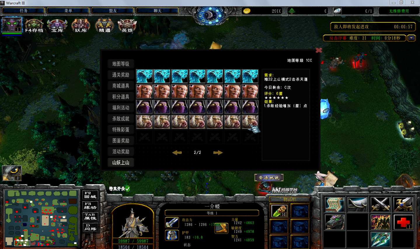 地图名字:山妖出山1.0.90地图下载+全商城特权+全存档+隐藏英雄+无CD+指令功能