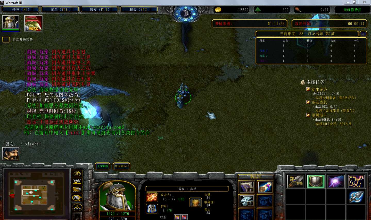 | 技能菜单【光环类技能】 | 自动化菜单【自动加钱木,提升英雄三围】 |