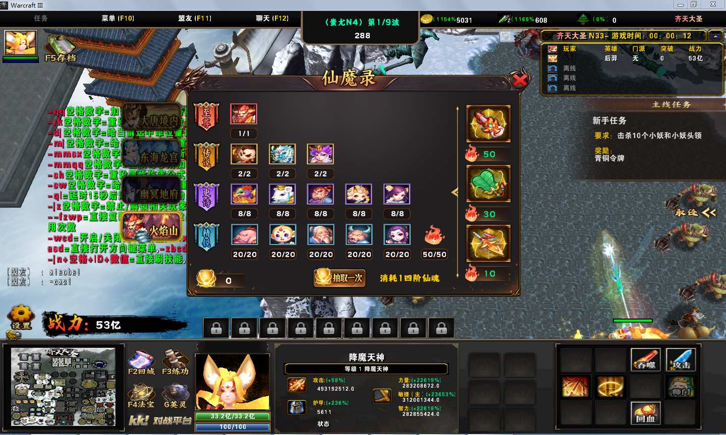 齐天大圣1.0.235地图下载+全商城特权+全存档+隐藏英雄+无CD+指令功能: