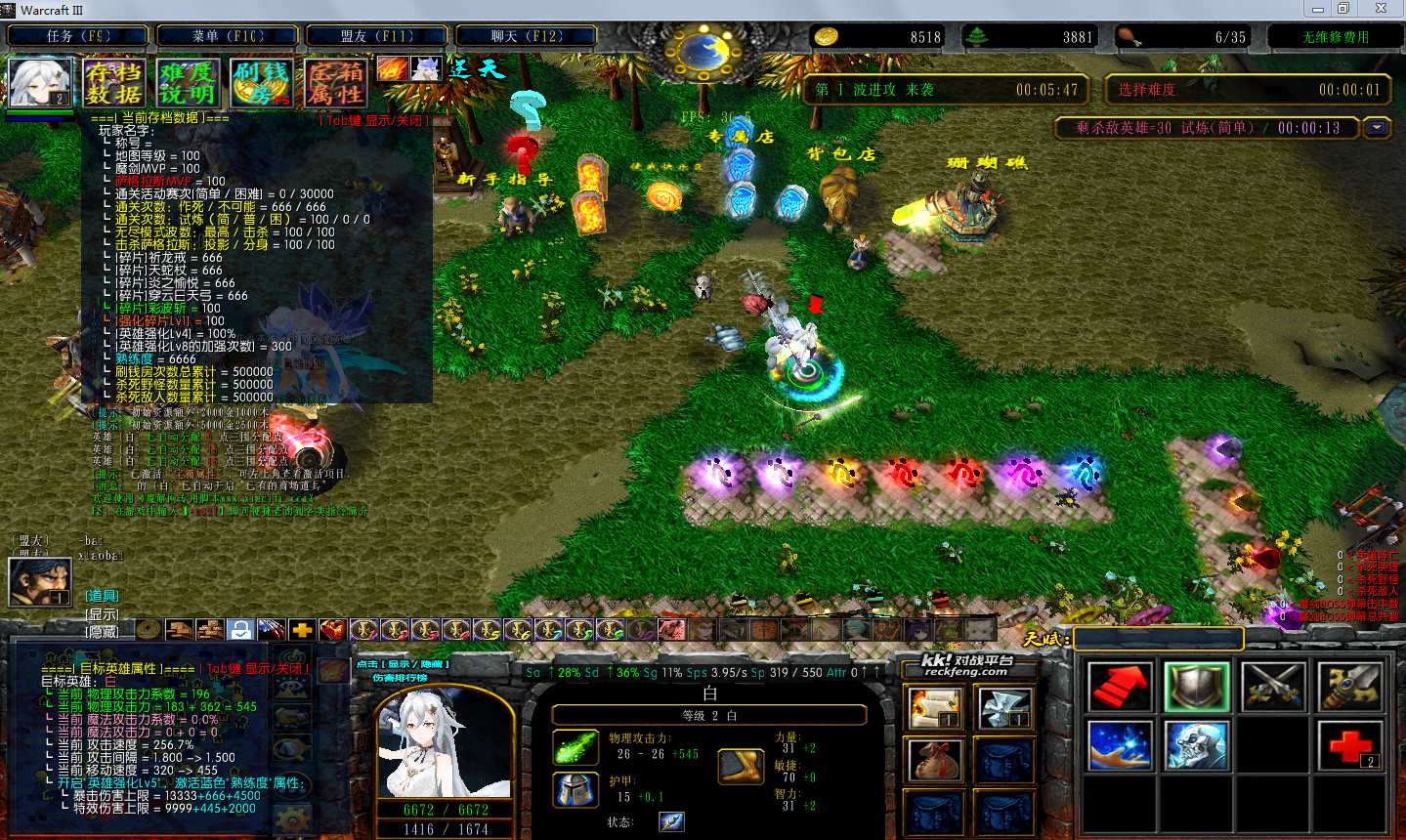 地图名字:翡翠花园7.4.28地图下载+全商城特权+全存档+隐藏英雄+无CD+指令功能