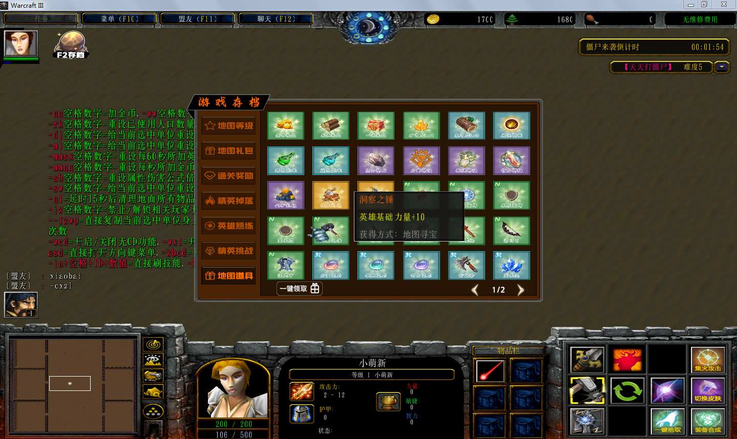| 技能菜单【光环类技能】 | 自动化菜单【自动加钱木,提升英雄三围】 |