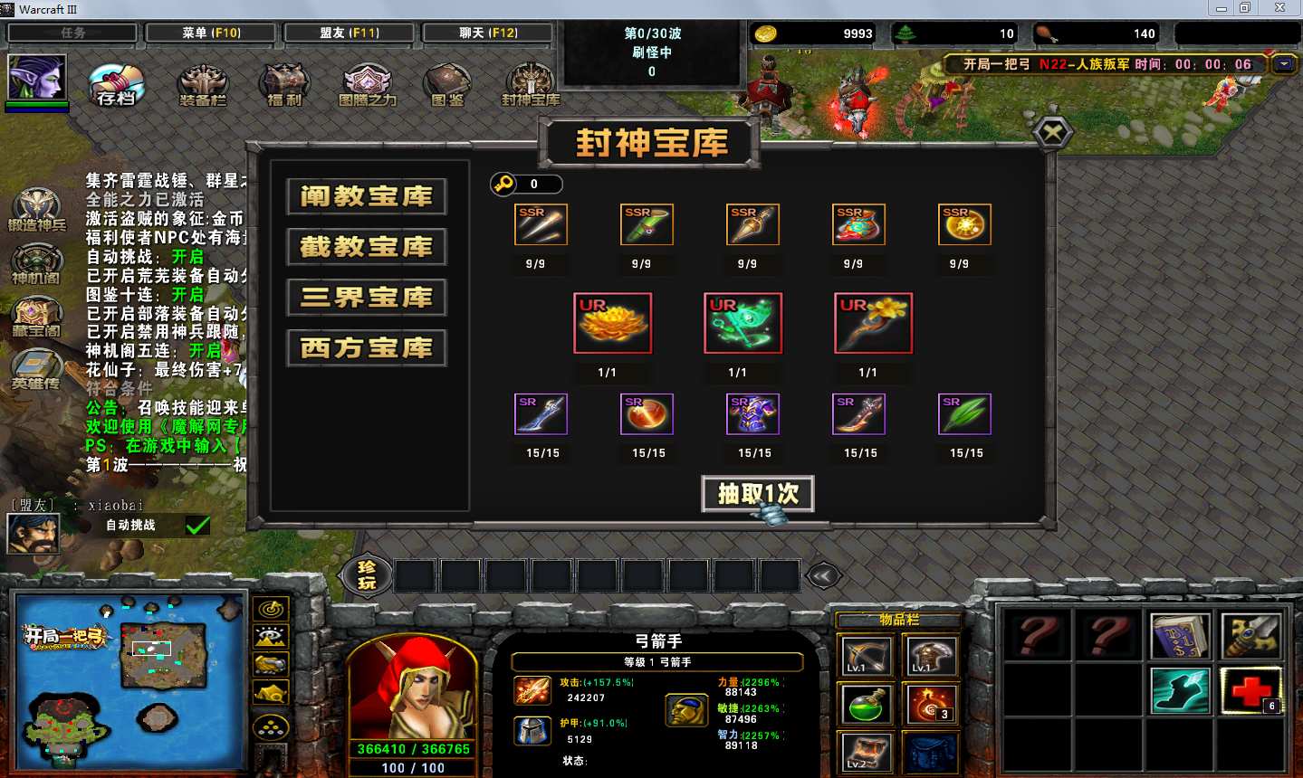 地图名字:开局一把弓1.0.162地图下载+全商城特权+全存档+无CD+指令功能
