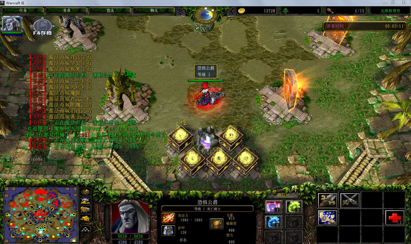 | 技能菜单【光环类技能】 | 自动化菜单【自动加钱木,提升英雄三围】 |