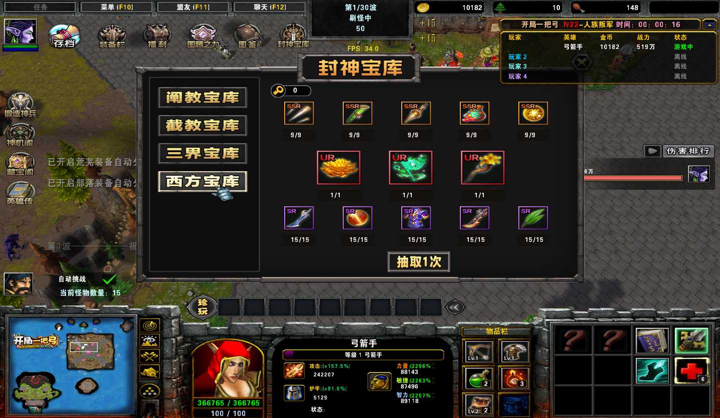 地图名字:开局一把弓1.0.164地图下载+全商城特权+全存档+无CD+指令功能