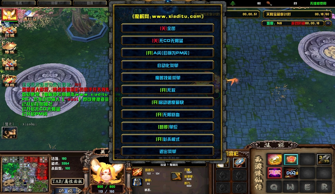 | 技能菜单【光环类技能】 | 自动化菜单【自动加钱木,提升英雄三围】 |