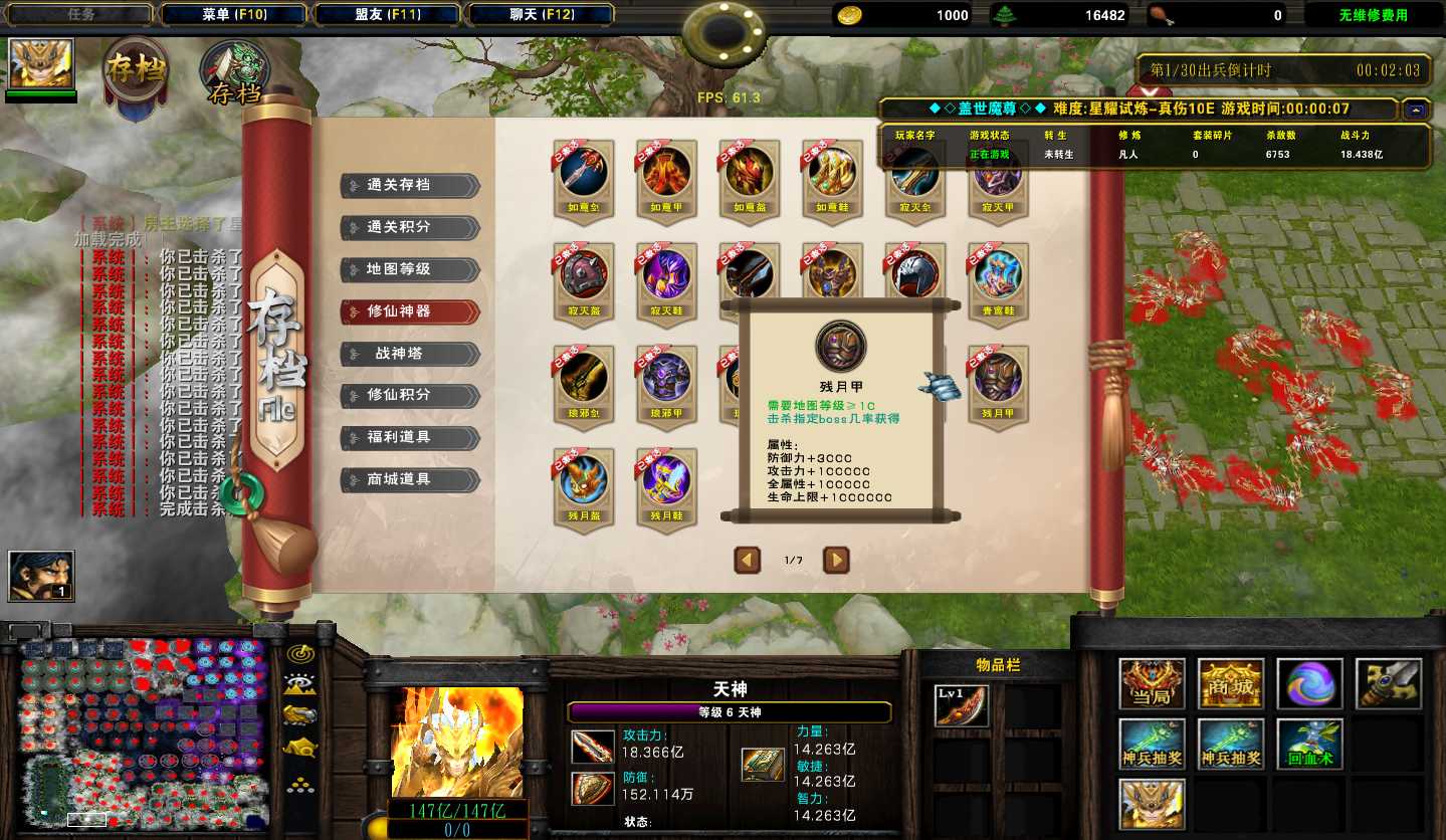 地图名字:盖世魔尊1.1.11地图下载+全商城特权+全存档+隐藏英雄+无CD+指令功能