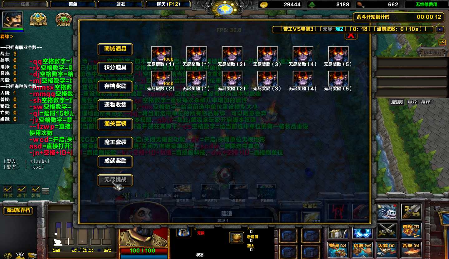 地图名字:苦工VS寺僧3 1.1.46地图下载+全商城特权+全存档+无CD+指令功能