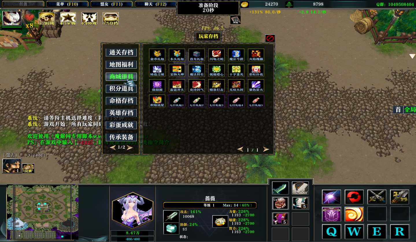 | 技能菜单【光环类技能】 | 自动化菜单【自动加钱木,提升英雄三围】 |