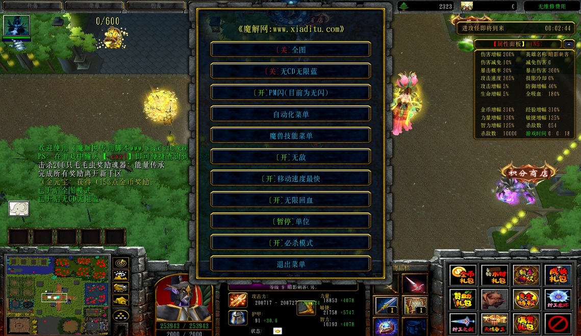 | 技能菜单【光环类技能】 | 自动化菜单【自动加钱木,提升英雄三围】 |