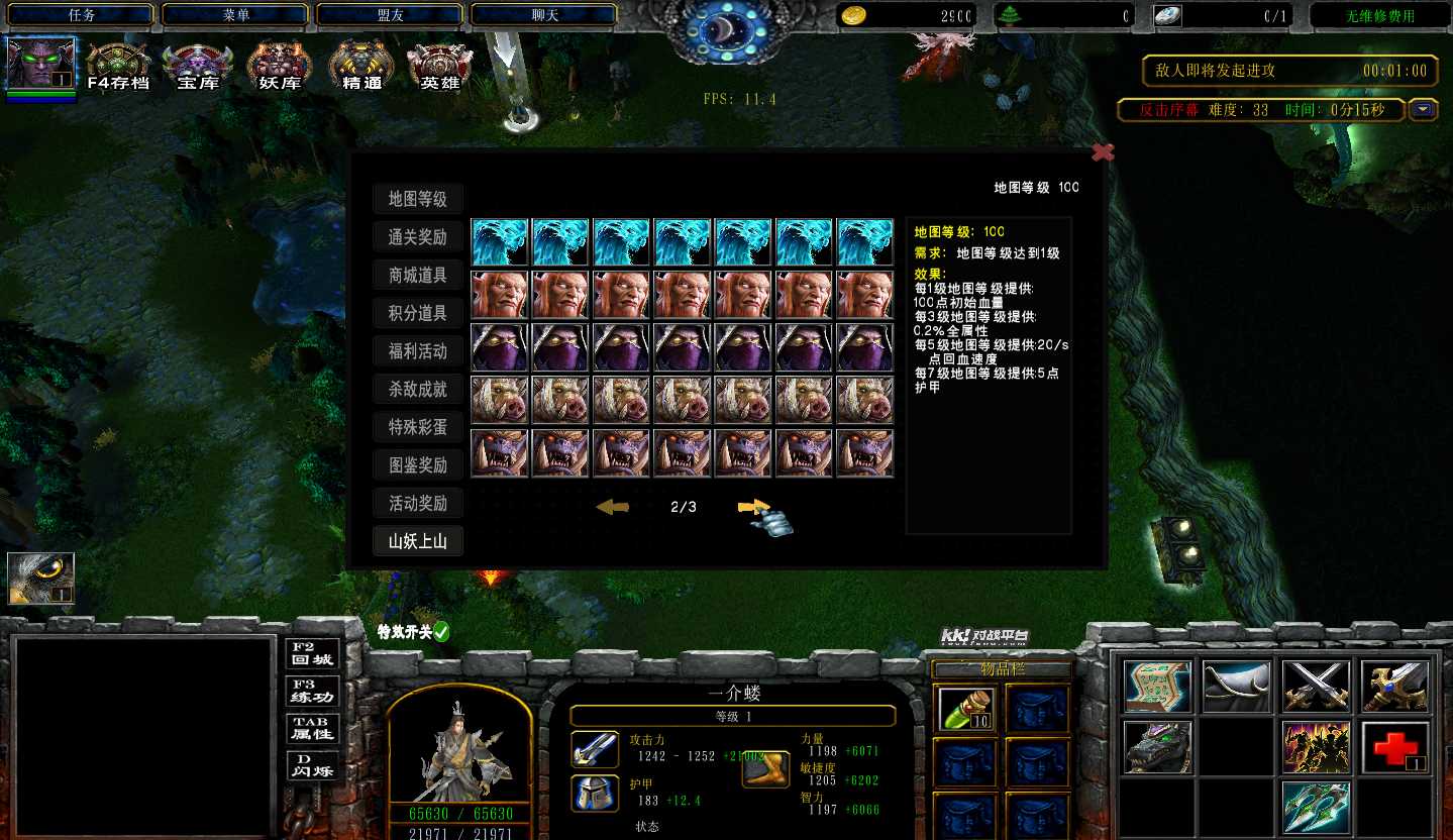 地图名字:山妖出山1.1.7地图下载+全商城特权+全存档+隐藏英雄+无CD+指令功能