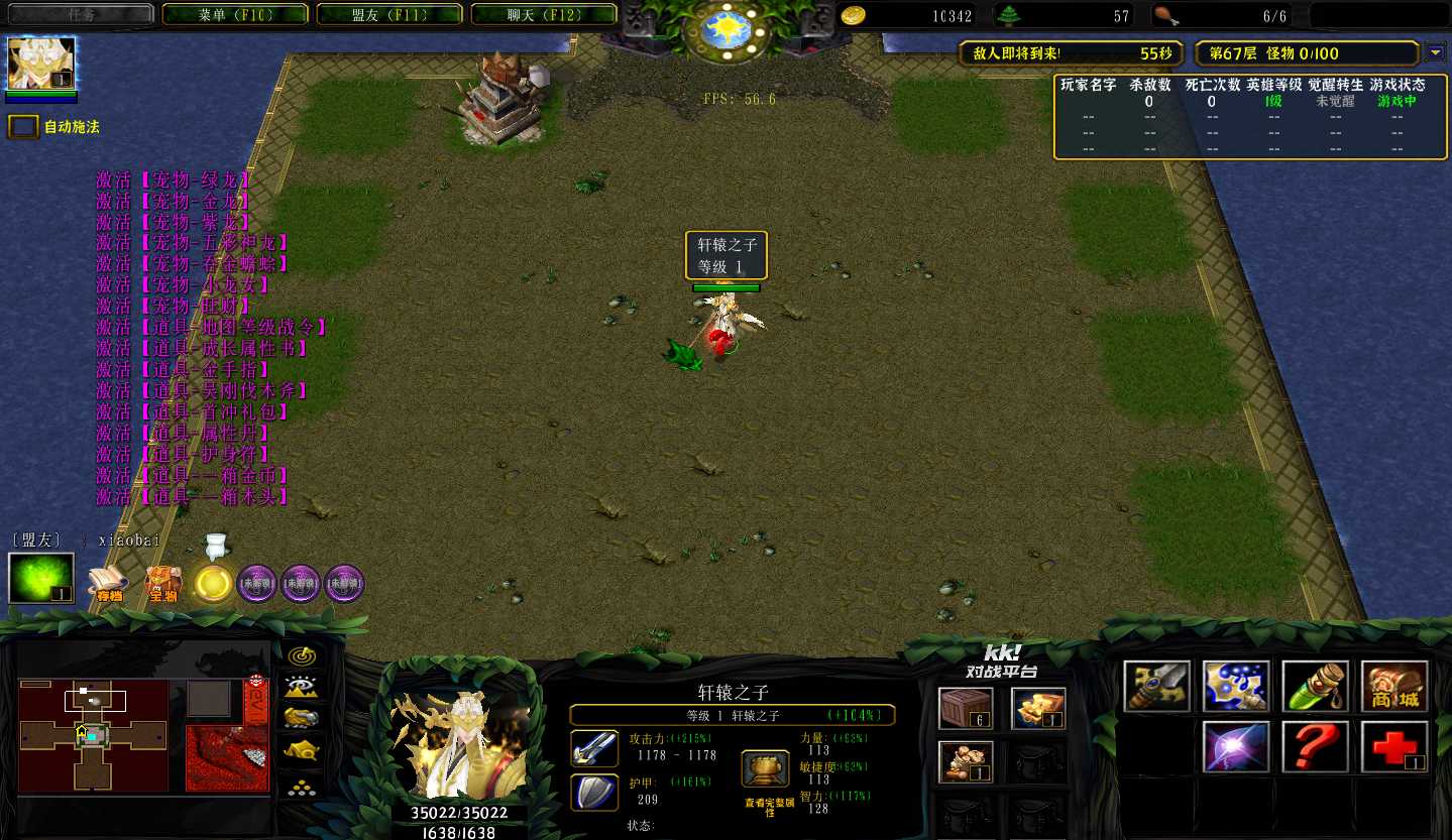 | 技能菜单【光环类技能】 | 自动化菜单【自动加钱木,提升英雄三围】 |