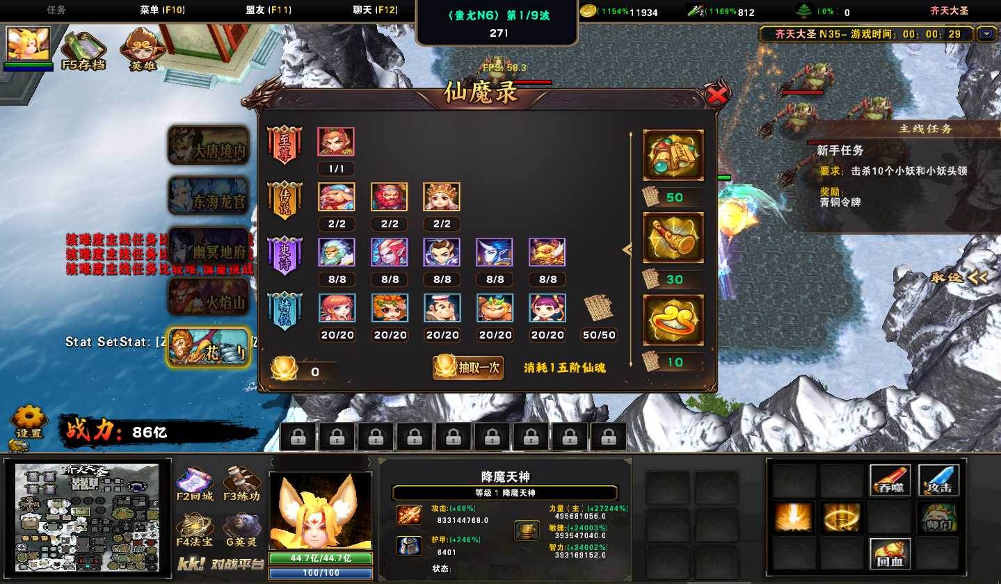 地图名字:齐天大圣1.0.245地图下载+全商城特权+全存档+隐藏英雄+无CD+指令功能