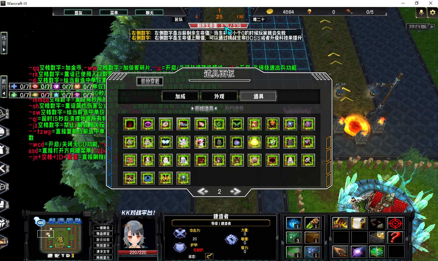 进化TD4.0.64地图下载+全商城特权+全存档+隐藏英雄+无CD+指令功能: