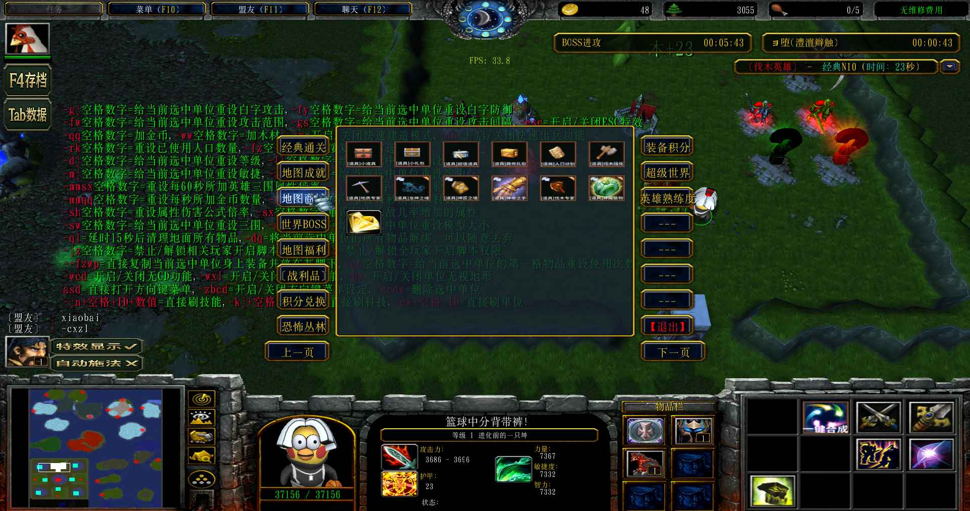 | 技能菜单【光环类技能】 | 自动化菜单【自动加钱木,提升英雄三围】 |