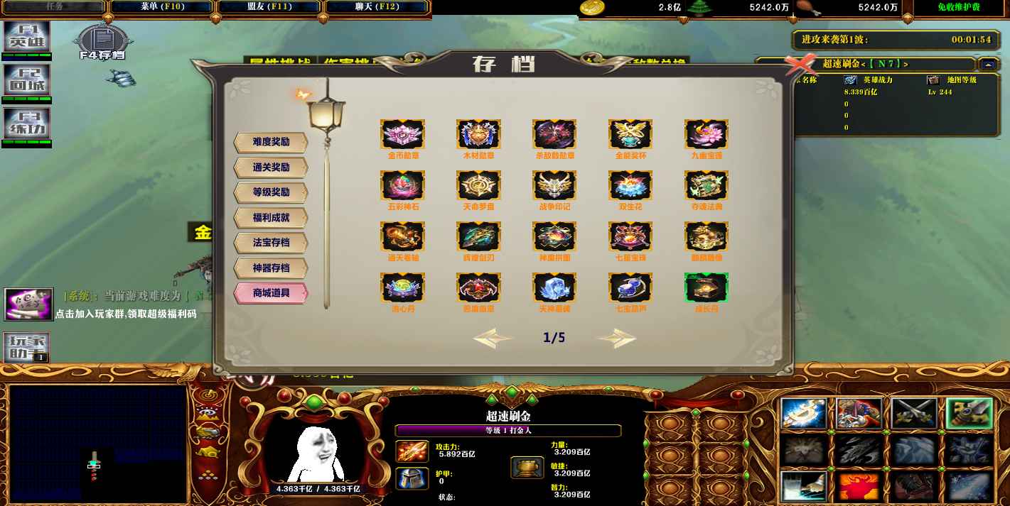 | 技能菜单【光环类技能】 | 自动化菜单【自动加钱木,提升英雄三围】 |