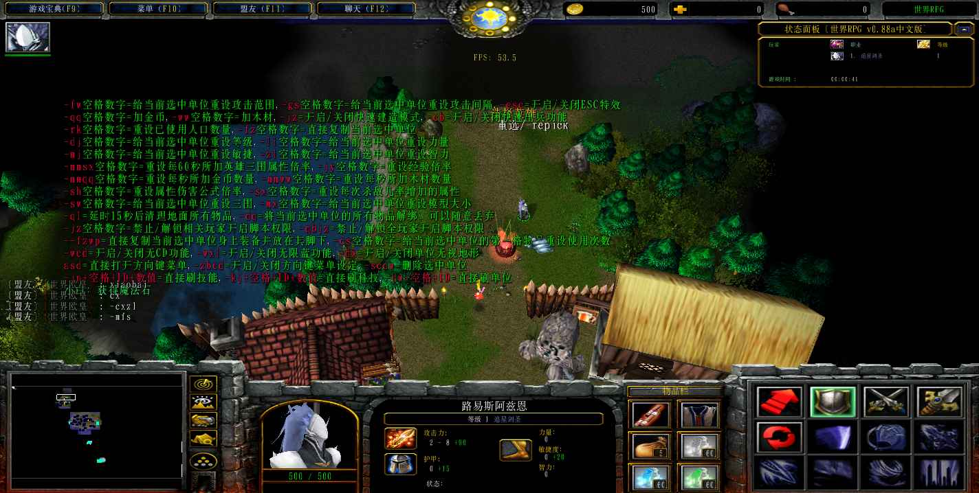 地图名字:世界RPG v0.88a中文版2.1.42地图下载+爆率提高+各类套装+各类材料+无CD+指令功能
