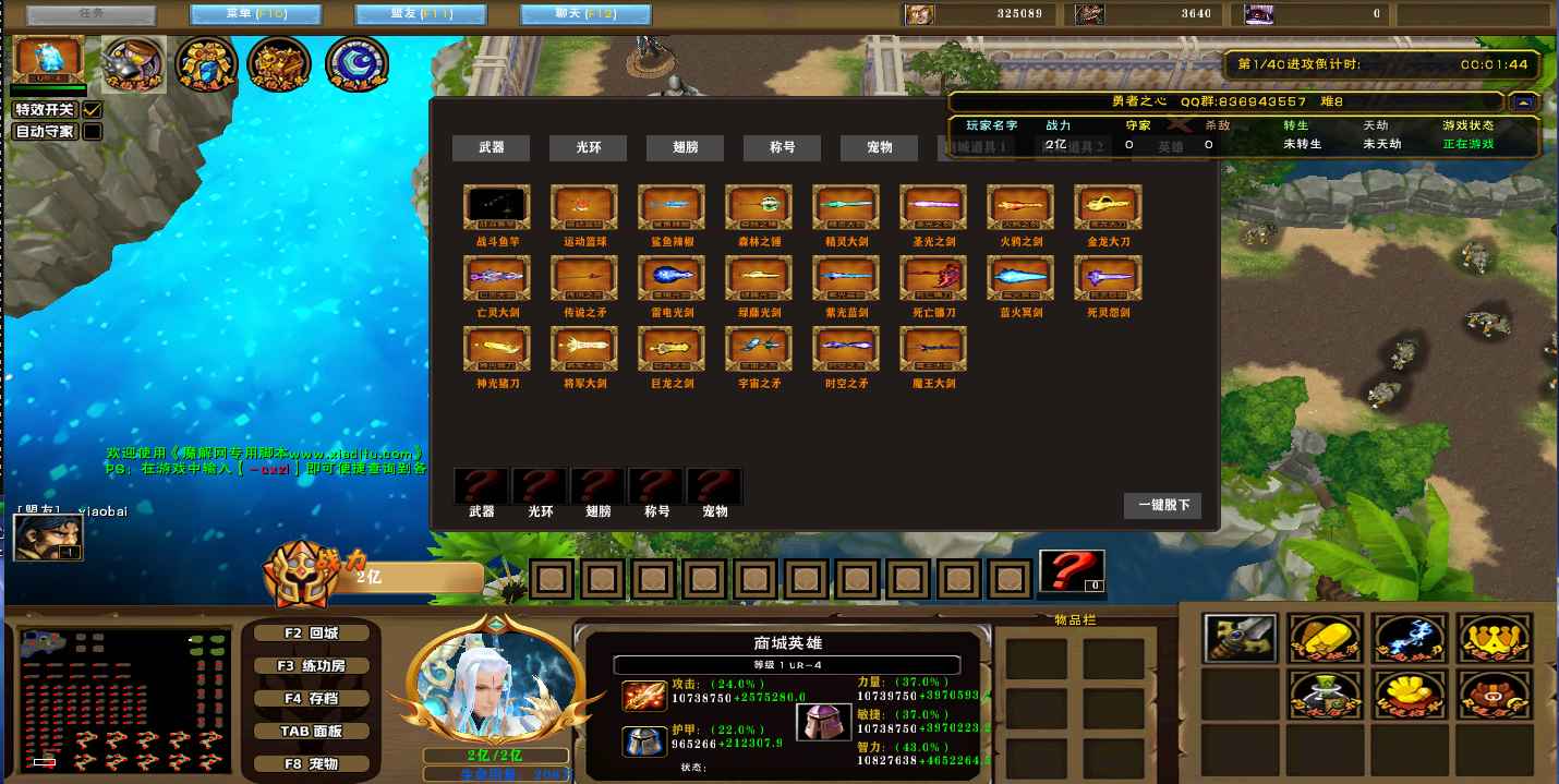| 技能菜单【光环类技能】 | 自动化菜单【自动加钱木,提升英雄三围】 |