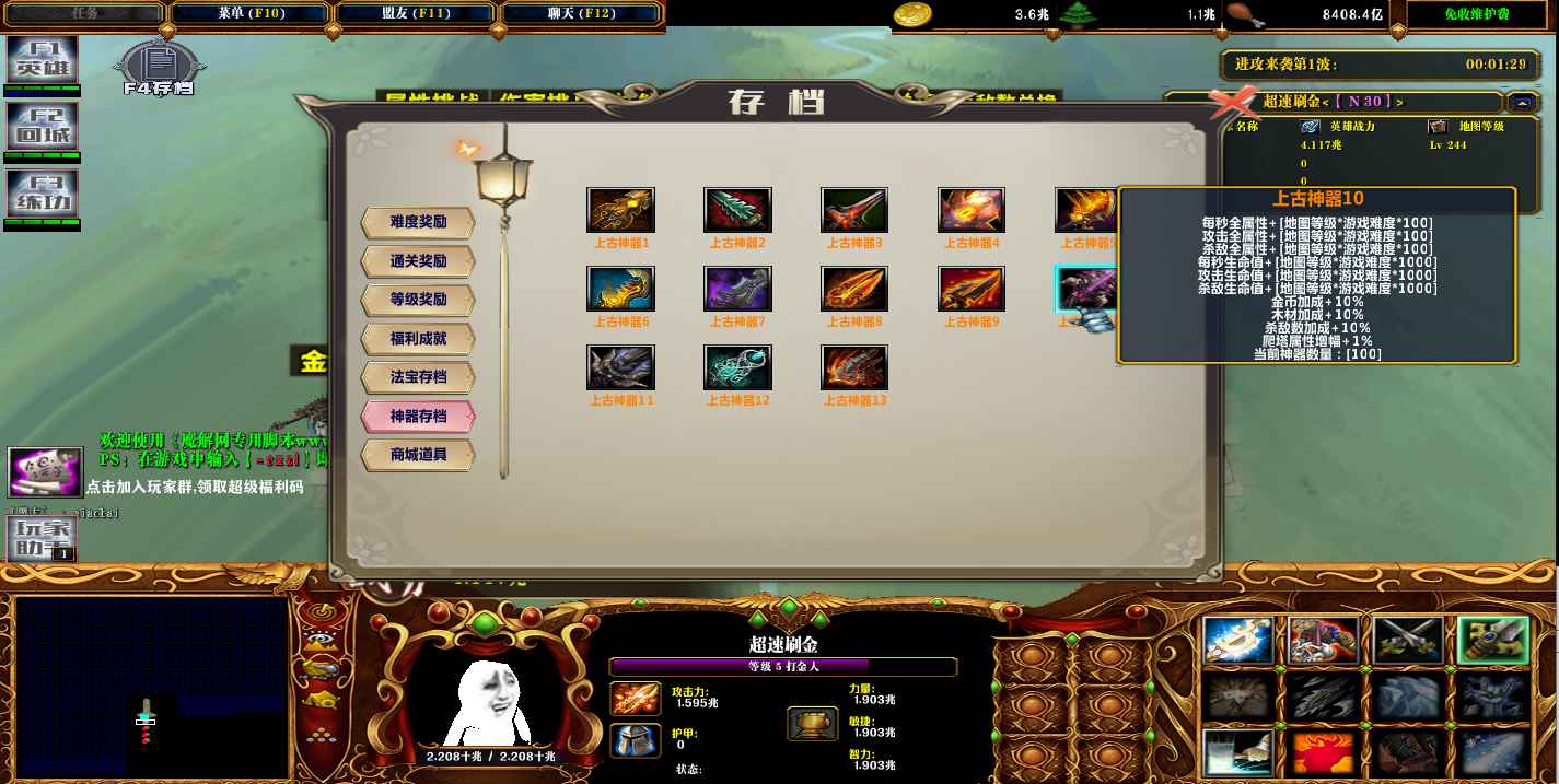 地图名字:超速刷金V1.2.4地图下载+全商城特权+全存档+无CD+指令功能