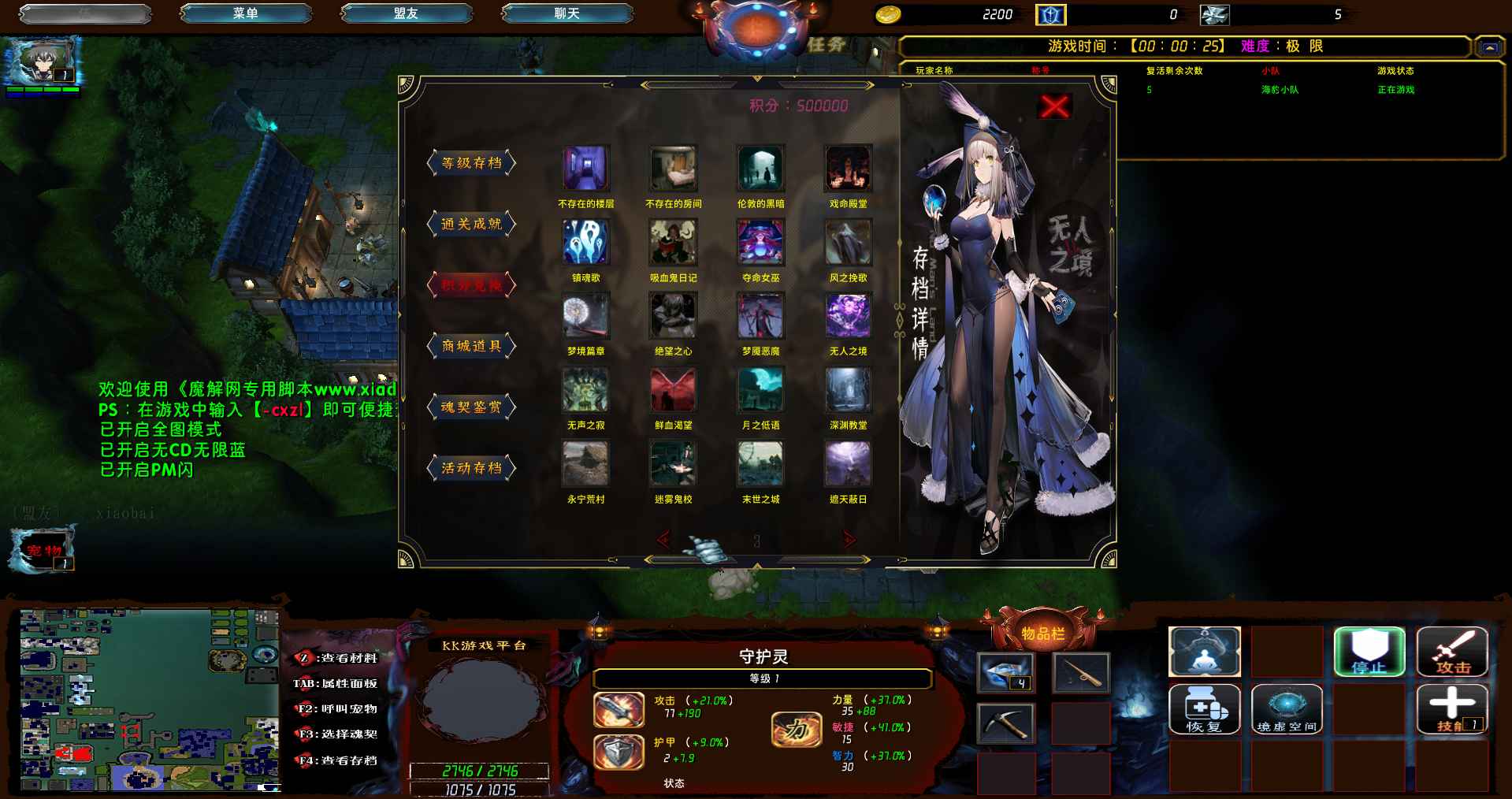 地图名字:无人之境2 3.1.2地图下载+全商城特权+全存档+隐藏英雄+无CD+指令功能