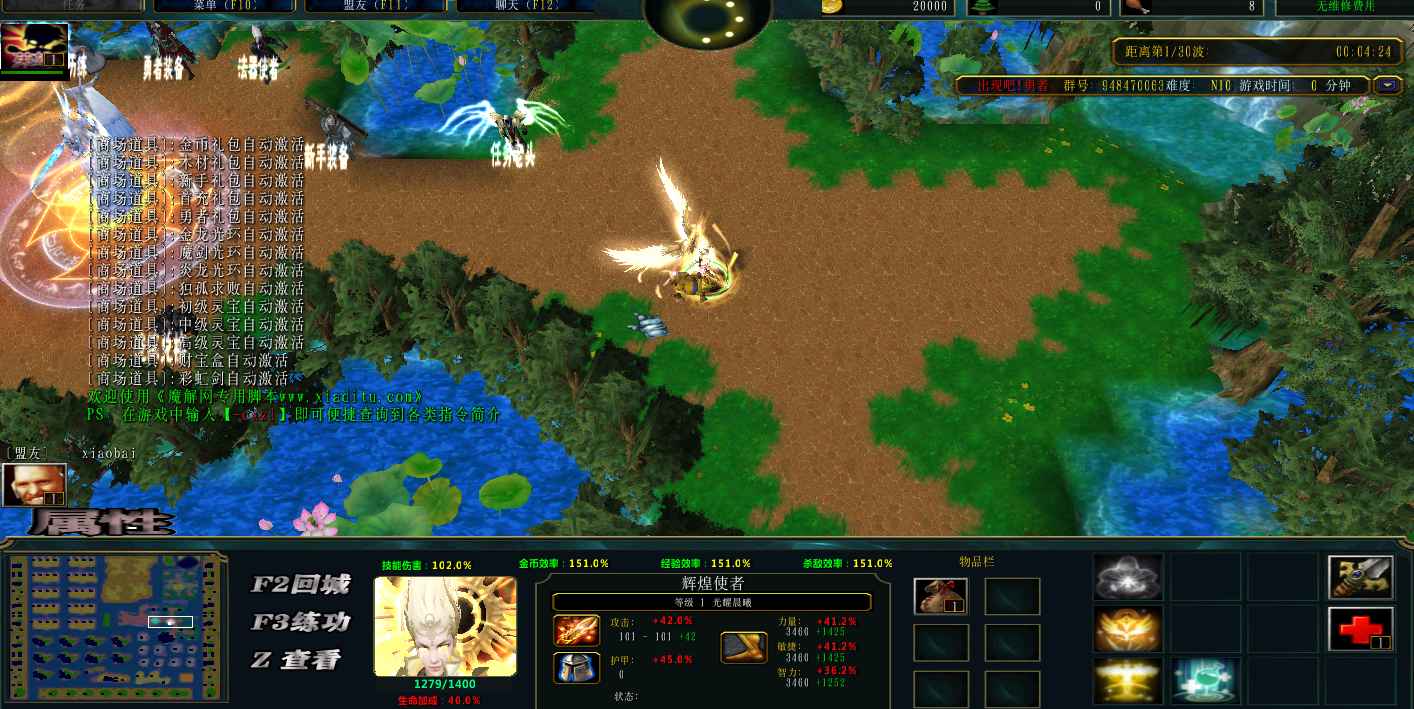 | 技能菜单【光环类技能】 | 自动化菜单【自动加钱木,提升英雄三围】 |