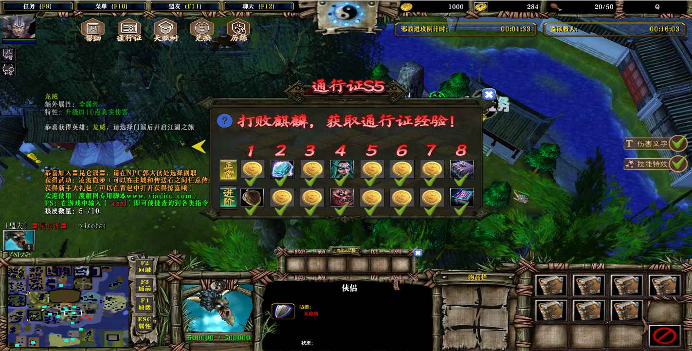 地图名字:决战江湖1.7.78地图下载+全商城特权+全存档+隐藏英雄+无CD+指令功能