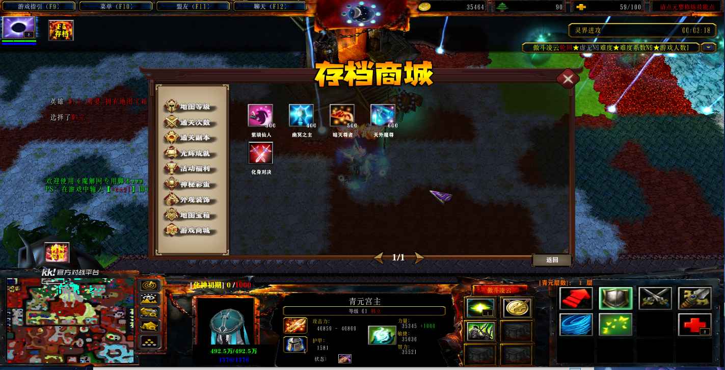 地图名字:傲斗凌云轮回1.2.6地图下载+全商城特权+全存档+隐藏英雄+无CD+指令功能