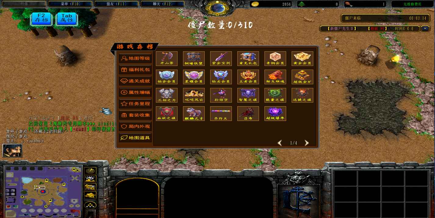 | 技能菜单【光环类技能】 | 自动化菜单【自动加钱木,提升英雄三围】 |