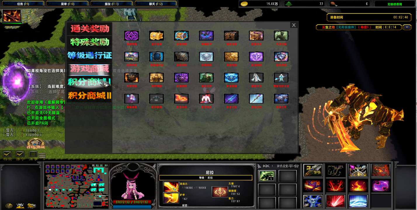| 技能菜单【光环类技能】 | 自动化菜单【自动加钱木,提升英雄三围】 |