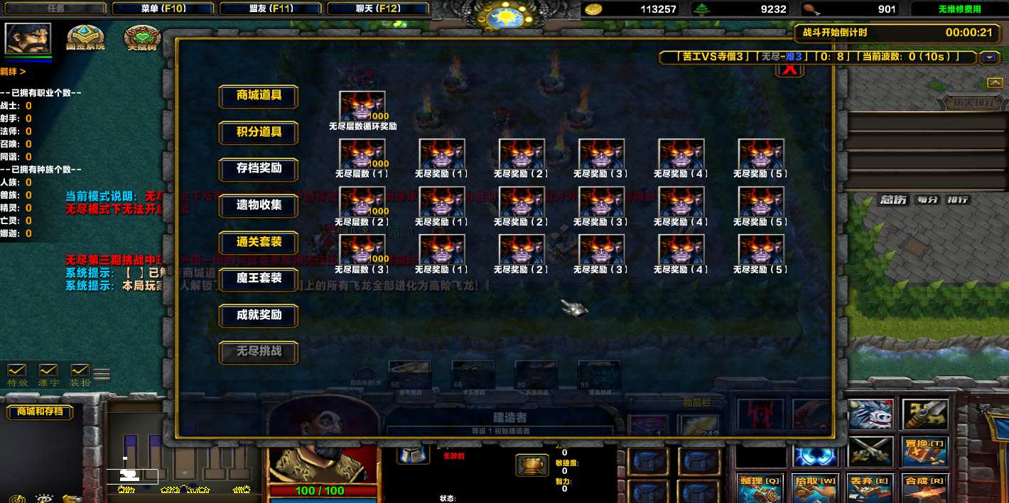 地图名字:苦工VS寺僧3 1.1.72地图下载+全商城特权+全存档+无CD+指令功能