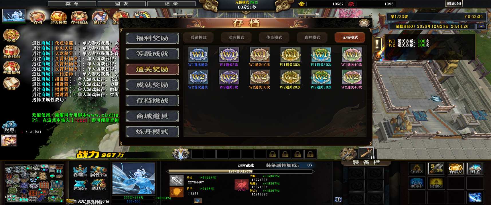 地图名字:仙侠HERO1.3.113地图下载+全商城特权+全存档+无CD+指令功能