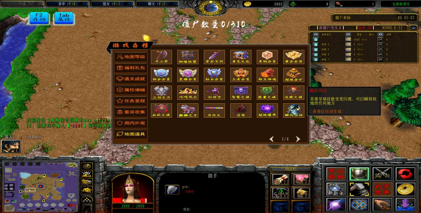 | 技能菜单【光环类技能】 | 自动化菜单【自动加钱木,提升英雄三围】 |