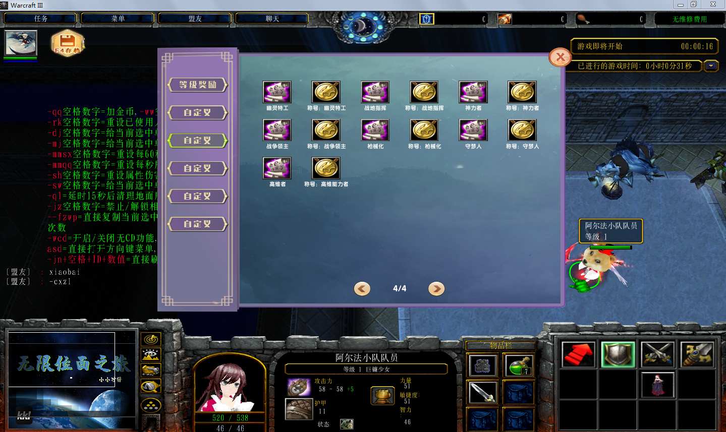 地图名字:无限位面之旅1.9.52地图下载+全商城特权+全存档+隐藏英雄+无CD+指令功能