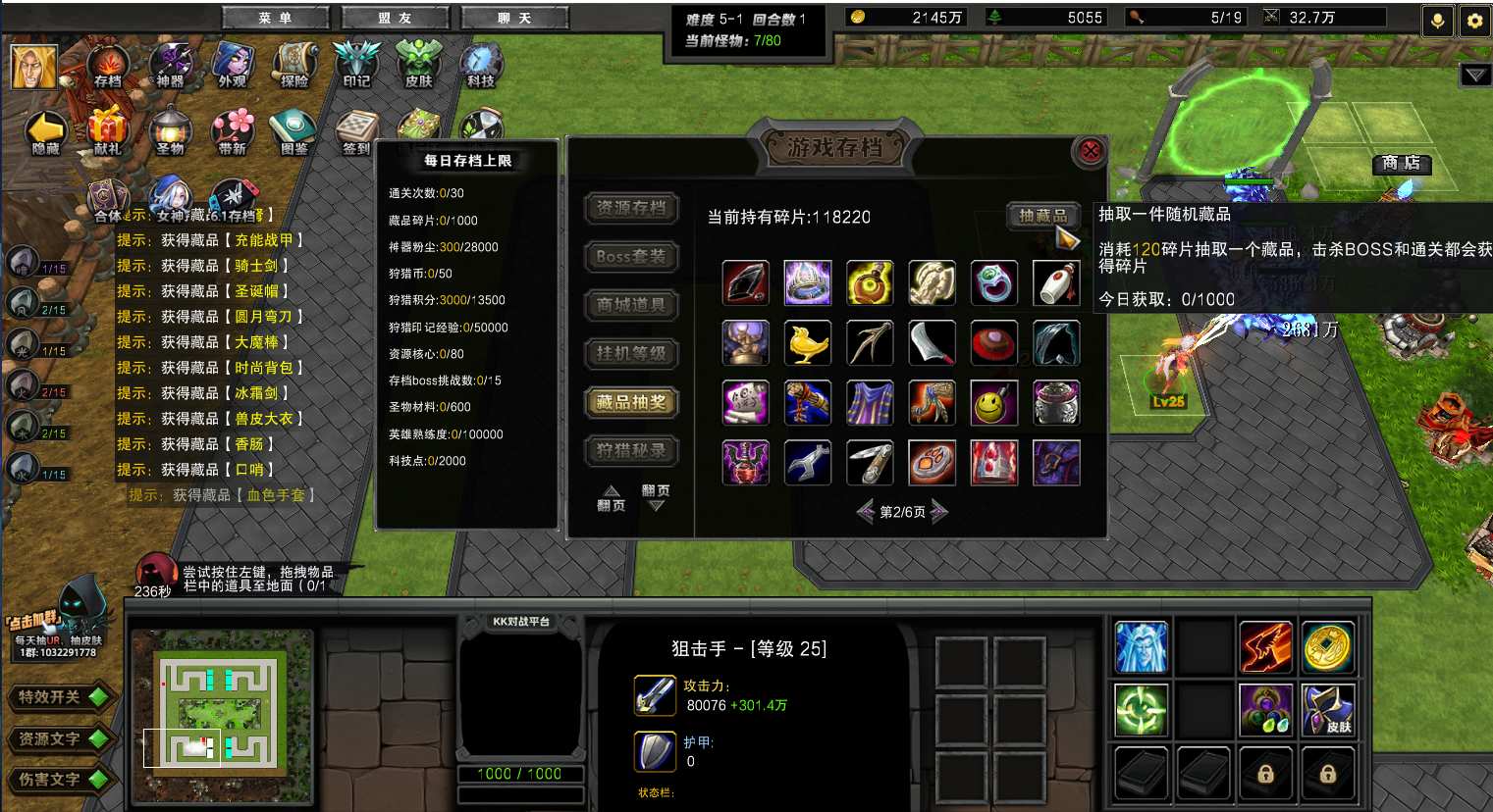 地图名字:爆战TD1.2.24地图下载+全商城特权+本地存档+无CD+指令功能