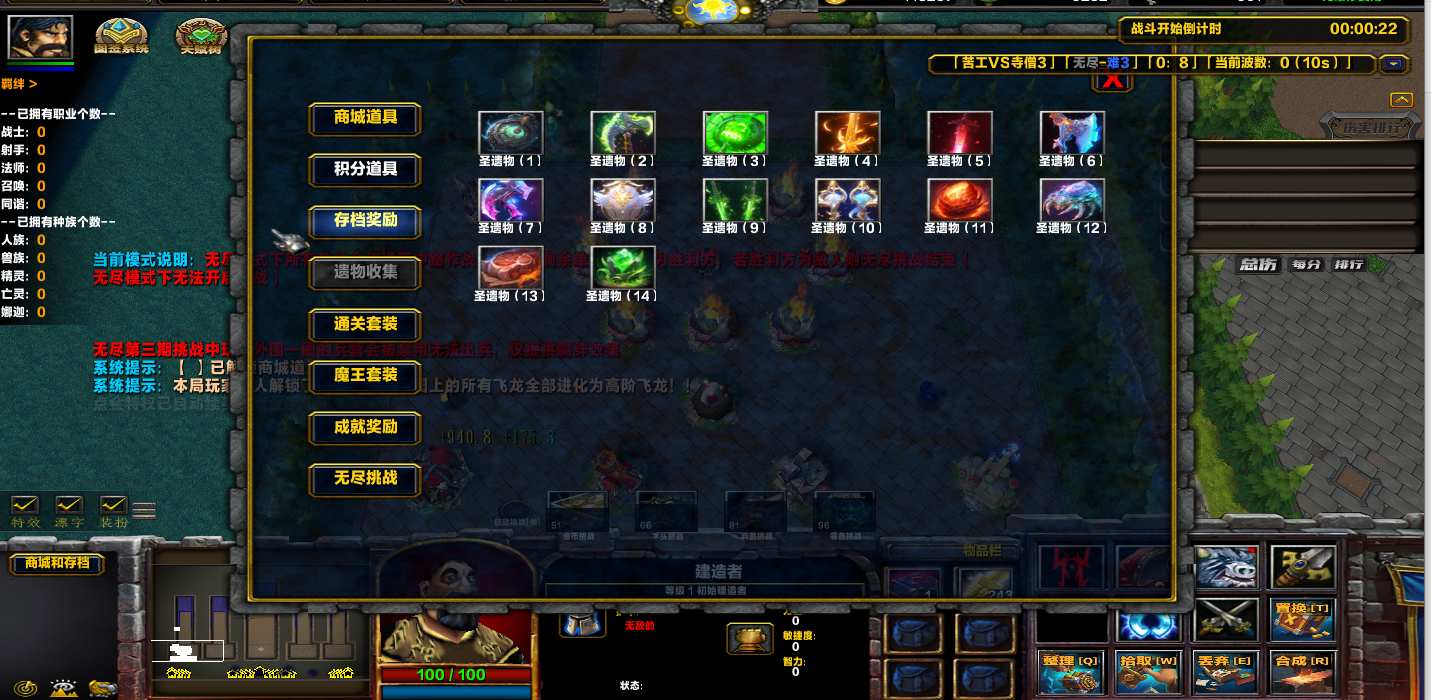 地图名字:苦工VS寺僧3 1.1.75地图下载+全商城特权+全存档+无CD+指令功能