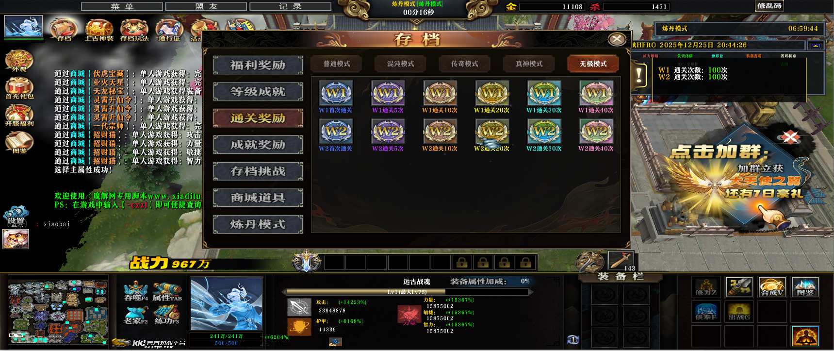 仙侠HERO1.3.114地图下载+全商城特权+全存档+无CD+指令功能: