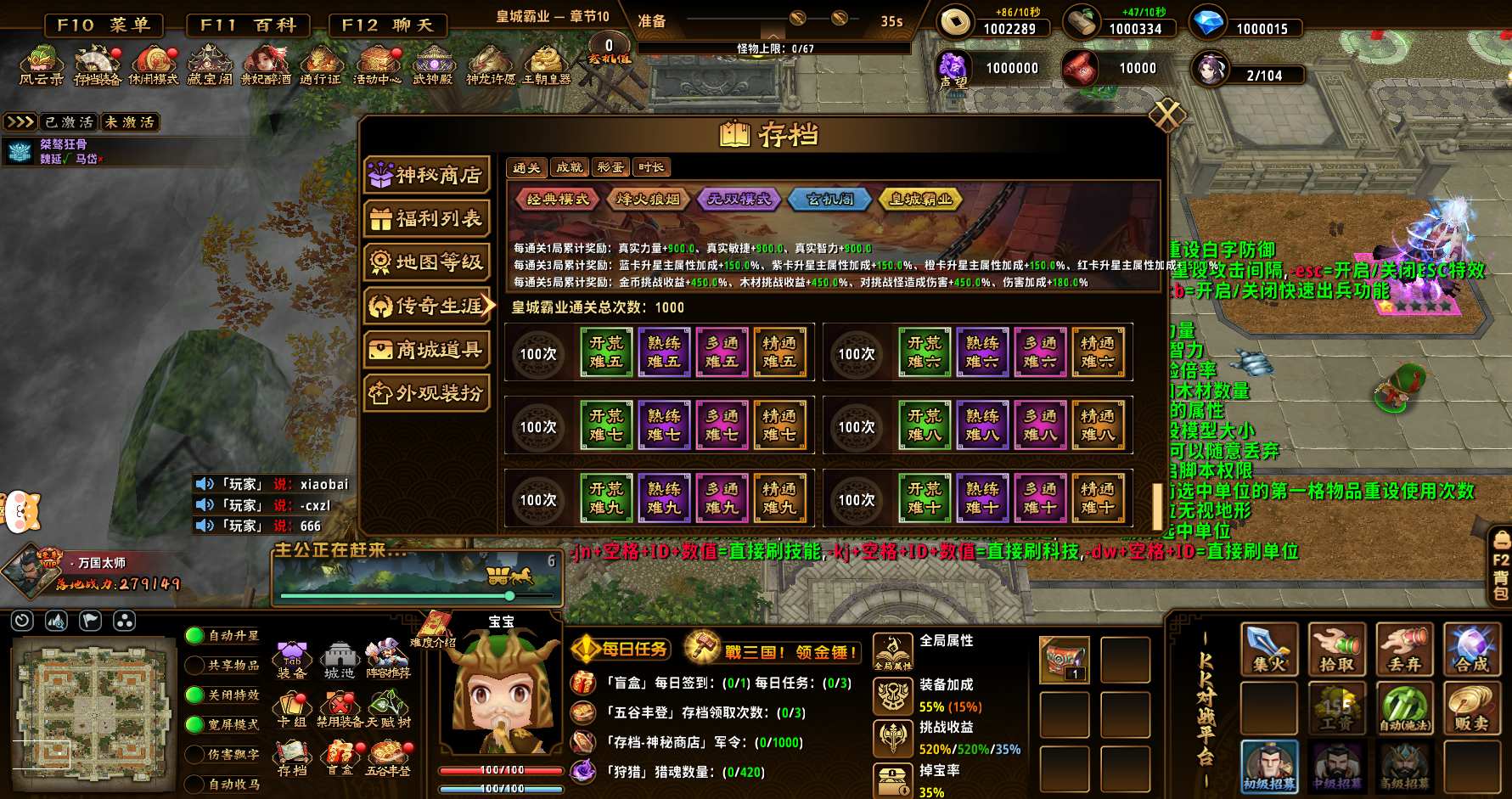地图名字:戰三国1.1.83地图下载+全商城特权+全存档+内测指令+无CD+指令功能
