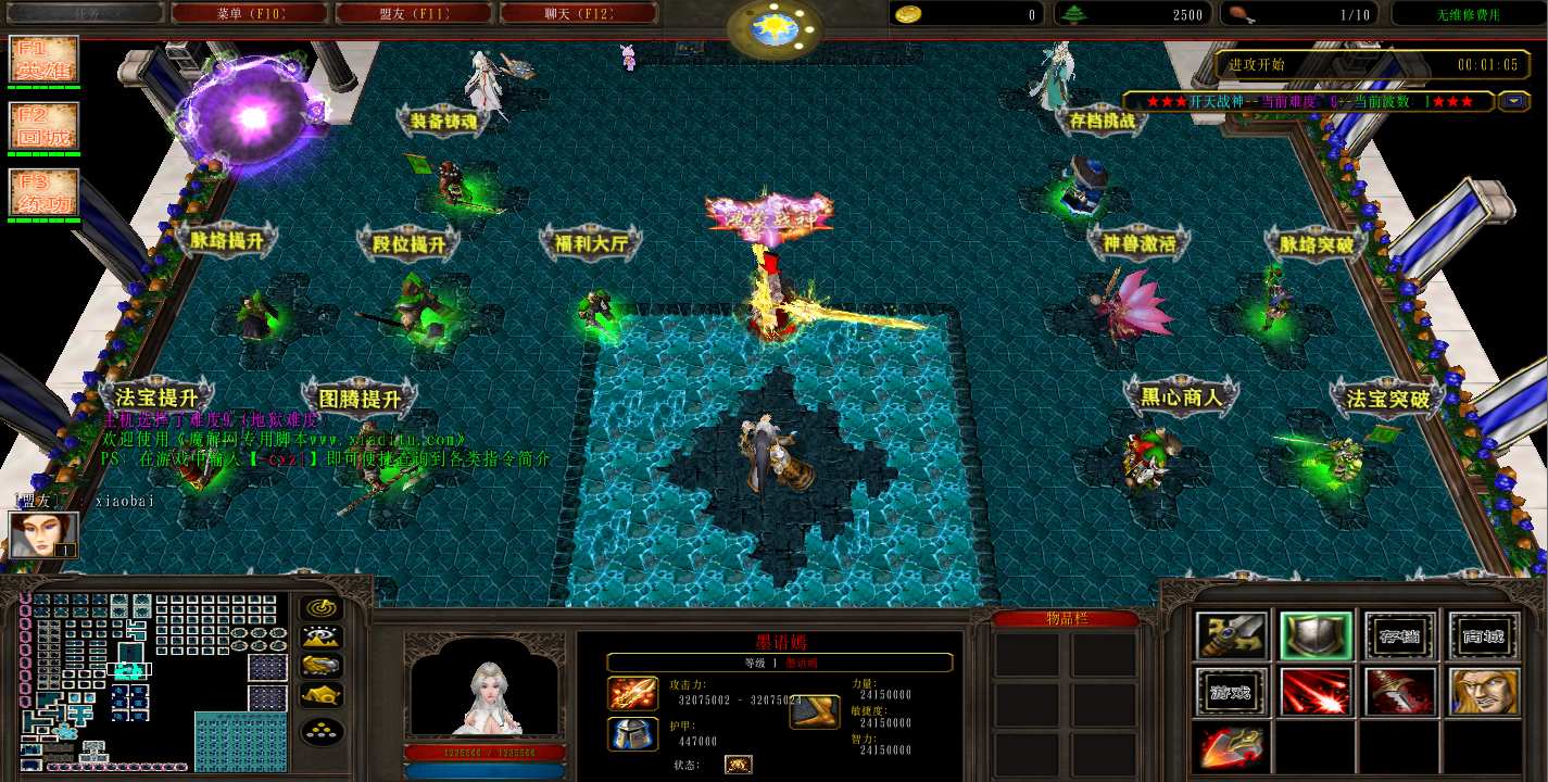 | 技能菜单【光环类技能】 | 自动化菜单【自动加钱木,提升英雄三围】 |