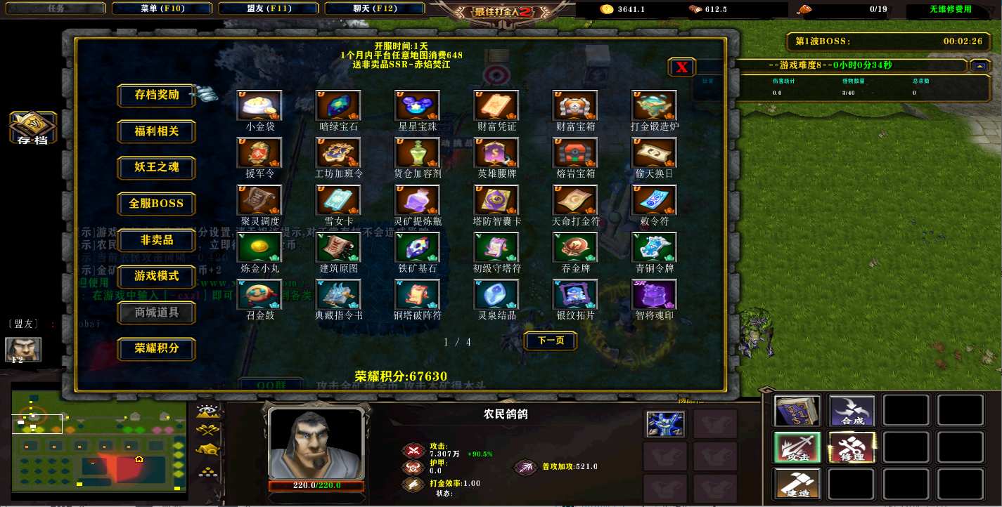 | 技能菜单【光环类技能】 | 自动化菜单【自动加钱木,提升英雄三围】 |