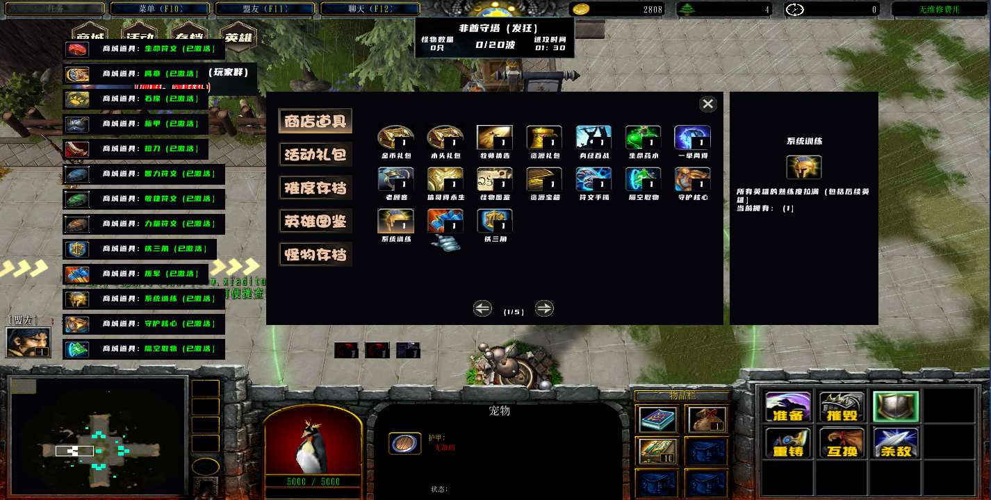| 技能菜单【光环类技能】 | 自动化菜单【自动加钱木,提升英雄三围】 |
