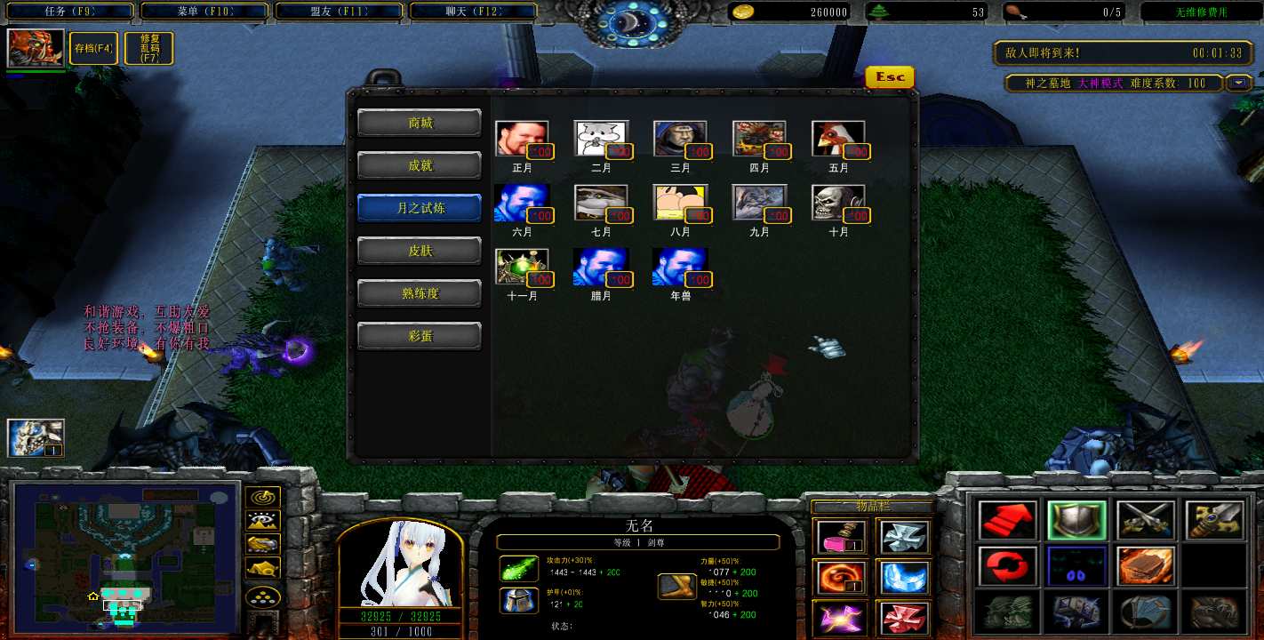地图名字:神之墓地2.9.117地图下载+全商城特权+全存档+隐藏英雄+无CD+指令功能
