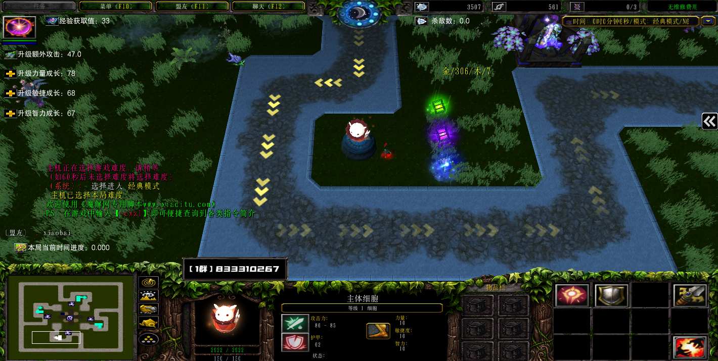 | 技能菜单【光环类技能】 | 自动化菜单【自动加钱木,提升英雄三围】 |