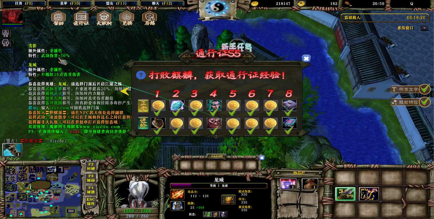 地图名字:决战江湖1.7.82地图下载+全商城特权+全存档+隐藏英雄+无CD+指令功能