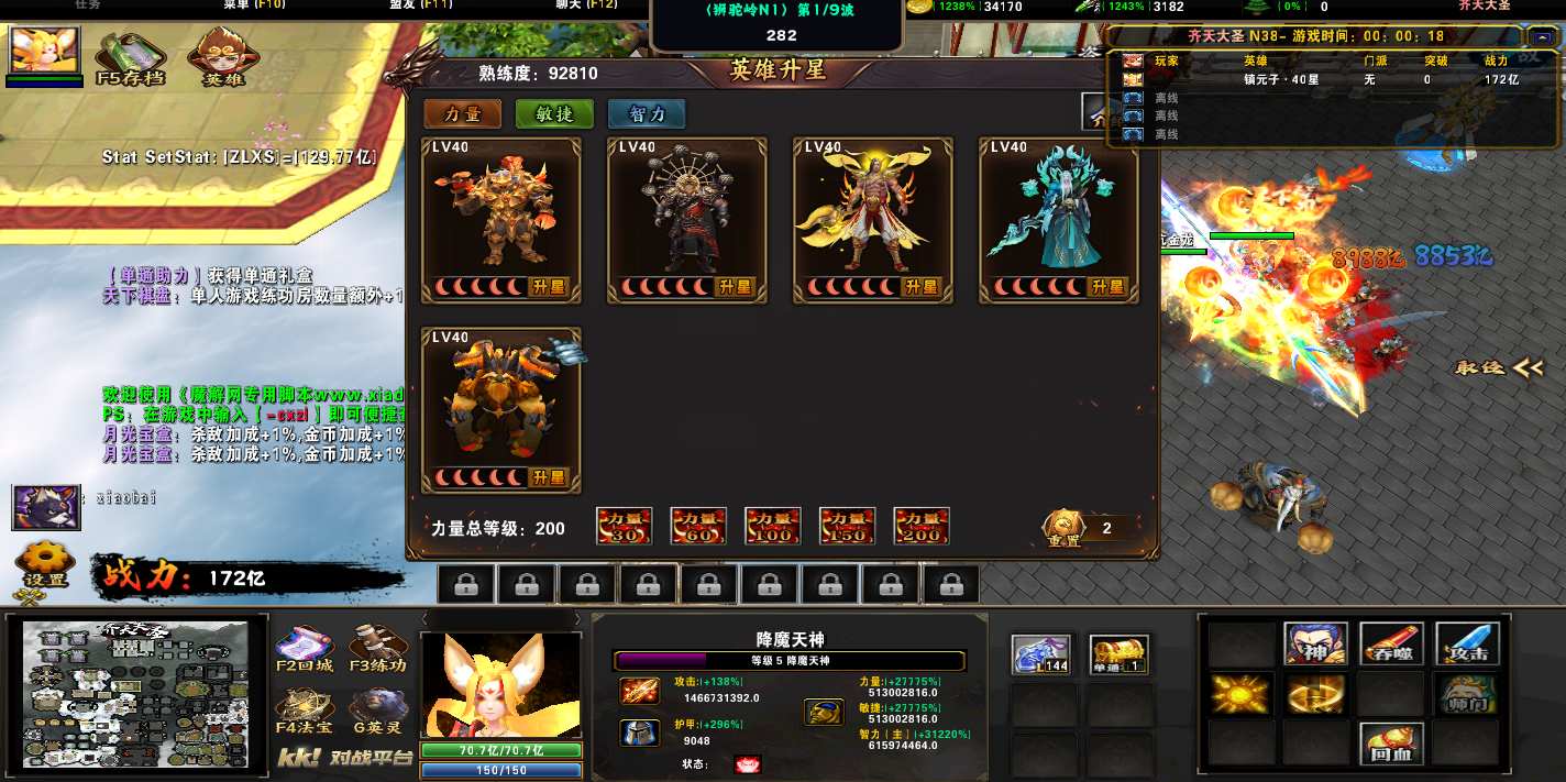 齐天大圣1.0.272地图下载+全商城特权+全存档+隐藏英雄+无CD+指令功能: