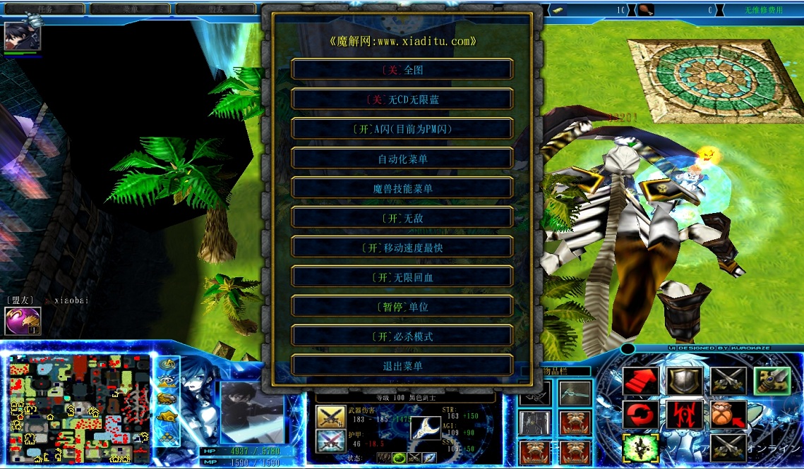 | 技能菜单【光环类技能】 | 自动化菜单【自动加钱木,提升英雄三围】 |